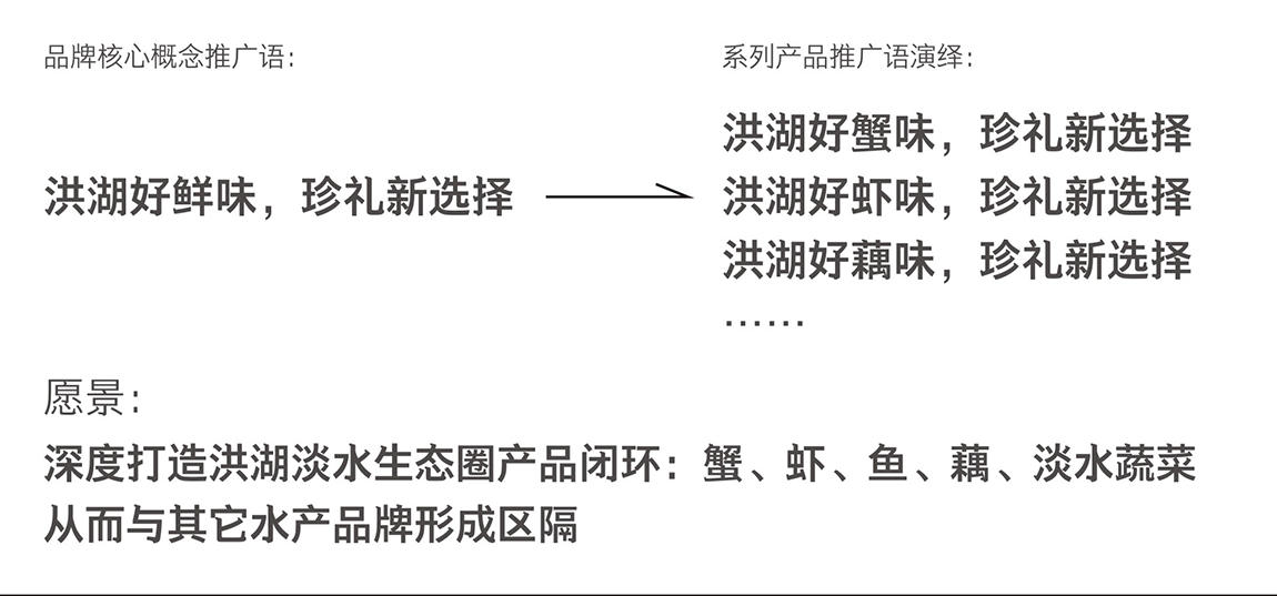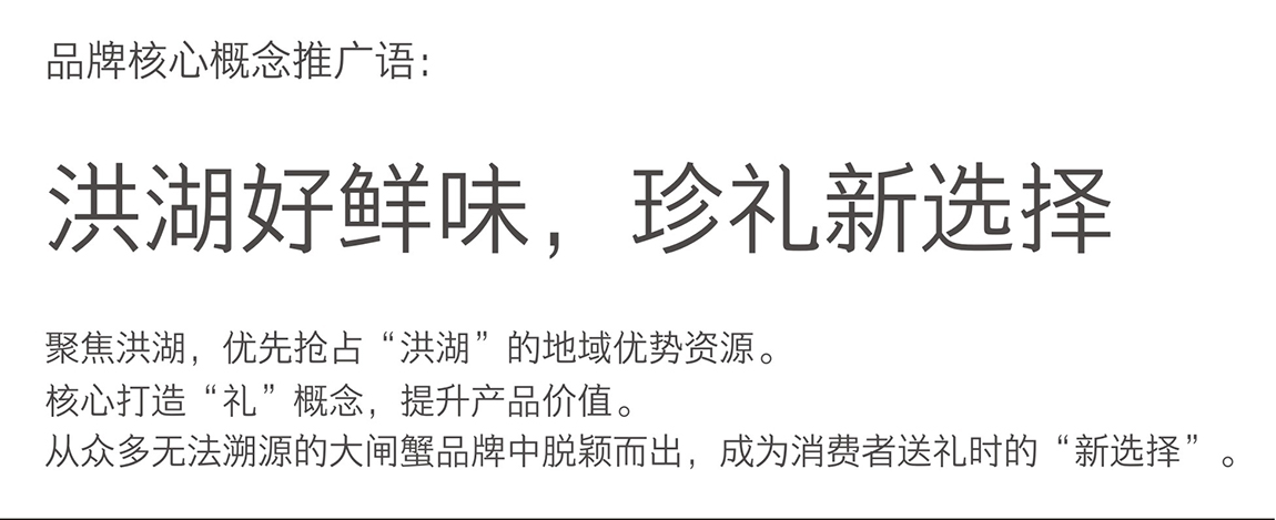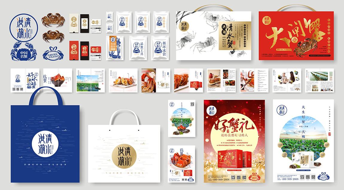 洪湖清水,作为湖北闽洪集团旗下的水产品牌,主营大闸蟹,附带出售鱼、虾、藕、淡水蔬菜等淡水产品,所面临问题是:形象差、品牌价值感低,无法其它水产品牌抗衡。针对这些问题,七色通道从品牌核心概念入手,提炼出“洪湖好鲜味,珍礼新选择”的品牌推广语,再将品牌推广语贯穿至每一个产品,深度打造洪湖淡水产品生态圈,从而与其它水产品牌形成区隔。随后,七色通道为其提炼出切合产品优势的广告语、核心卖点,再依据这些极具竞争力的独特卖点,规划、设计出符合极具销售力的包装、广宣物,大大改善了产品形象,刺激了销量,提升了品牌知名度。