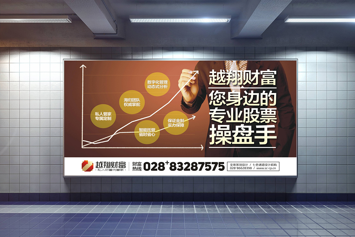 在竞争异常激烈的金融行业,要想获得对市场极其敏锐的投资者的青睐,即需要一个稳重可靠的形象,又需要给投资者选择自己的理由。七色通道在对越翔财富进行了SWOT分析后,为其提炼出“私人财富优管家”这一概念。并根据市场需求,为其提炼出多条USP(卖点),形成越翔财富的USPS系统,让受众清晰地了解到越翔财富的优势,再结合贴合金融行业的形象包装、宣传推广,越翔财富在短期内迅速收获了大量高净值投资者,在金融行业,一炮而红。