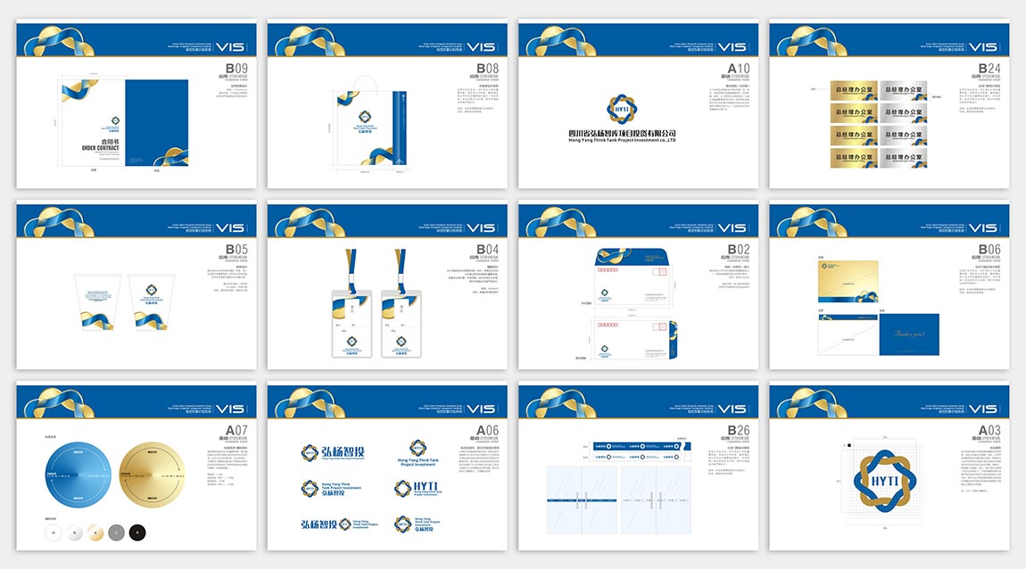 弘扬智投,专业孵化项目的智慧投资平台。在其品牌基因中,需要突出投资的希望与智慧,也需要体现金融的价值与品质。因此,在设计表现上,七色通道为其选取了智慧蓝和金融金,并嵌入一些国际化元素,再为其规范出一套符合行业属性的VIS系统,将其塑造成一个充满希望的国际化智慧投资平台。